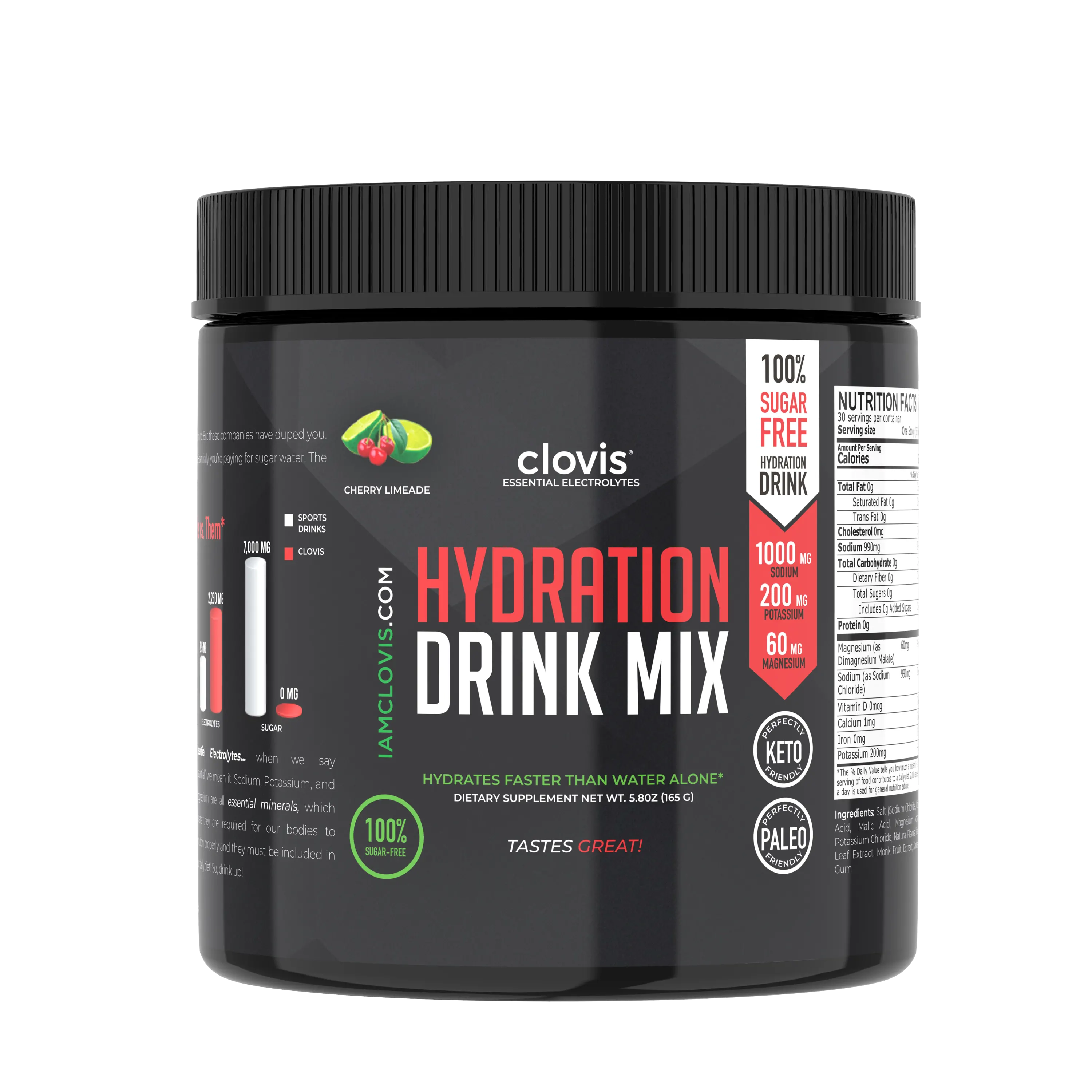 Clovis’ Sugar-Free & Stimulant-Free Hydration Formula is packed with the 3 most critical Hydrating Minerals to instantly help you make every workout count and see the quick results you demand!
