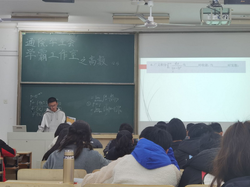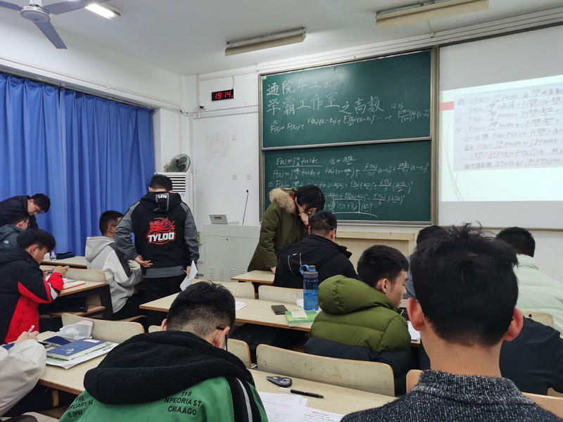 高等数学答疑过程中,纪风涛同学为同学们解答微积分的相关知识和习题,以往年真题中的易错题型为例,解释了此类问题的注意要点并提供解题思路。同学们认真地做笔记。