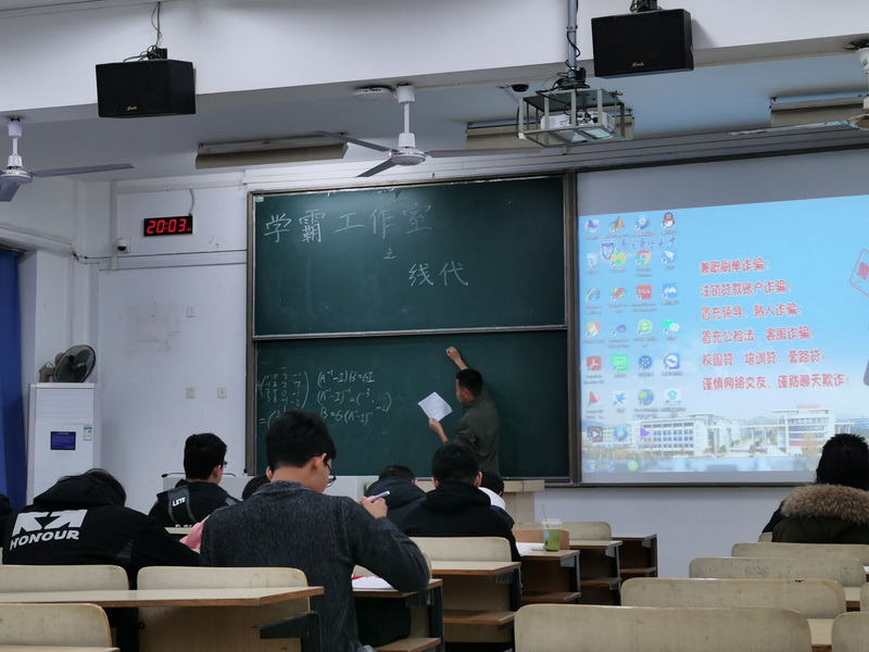 徐逸飞同学为大家讲解线性代数重点题型,将每一道题思路细细掰开揉碎,同学们听得津津有味。