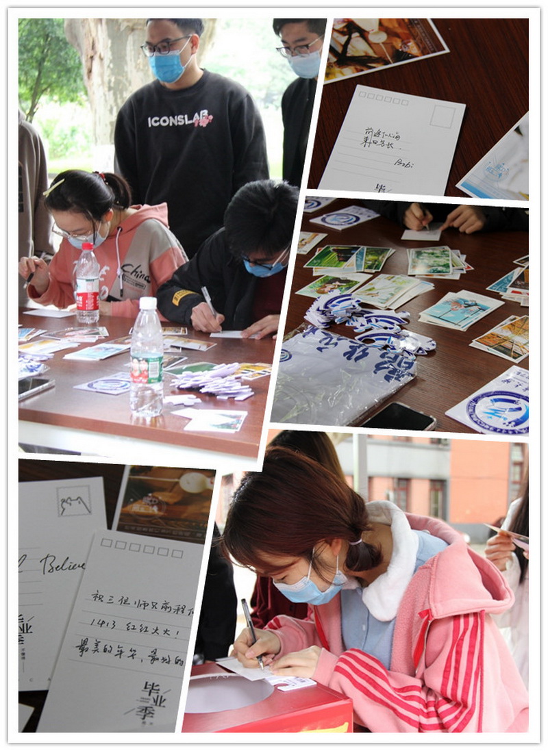同学们在南邮慢慢积淀,步步成长,当回首在校园的点点滴滴,总能想起曾经关心帮助过我们的人,这些人可能是我们的导师、任课老师、辅导员、同窗好友等等。师长的教诲牢记心间,同窗的鼓励犹在耳畔,临近毕业一定有很多话想要对他们倾诉,借此机会,参加活动的毕业生在华礼堂门口领取明信片,写下毕业赠言送给最想感谢的人,或者写自己投递到信箱中,珍藏起青春闪亮的回忆。