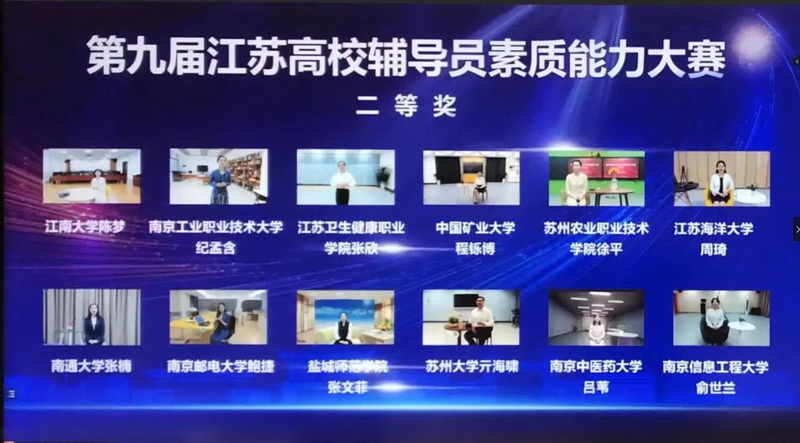 5月3日至4日,由中共江苏省委教育工委、江苏省教育厅主办的第九届江苏高校辅导员素质能力大赛决赛在江苏省高校辅导员培训与研修基地(南京师范大学)举办。根据疫情防控需要,大赛采用线上方式进行。公司鲍捷老师与来自全省各高校共40名优秀辅导员同台竞技,荣获二等奖。