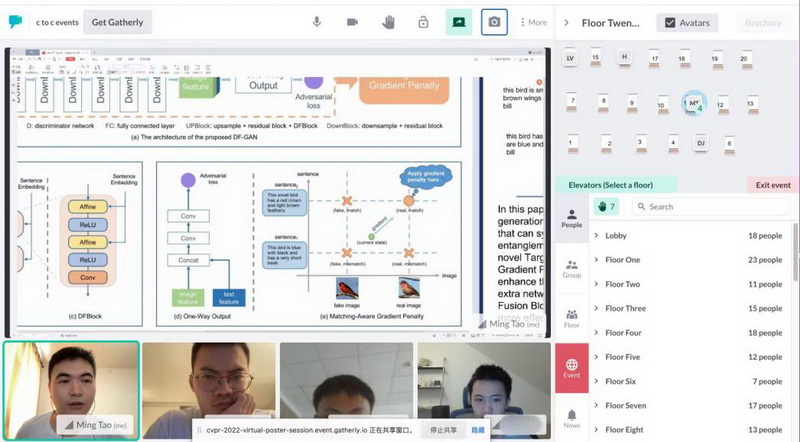 本次CVPR共收到8161篇投稿,2064篇论文被接收,其中340篇优秀的论文被接收为Oral论文,仅占总投稿数量的4%。公司bw西汉姆联,鲍秉坤教授团队的基于文本生成图像的研究成果(DF-GAN: A Simple and EffectiveBaseline for Text-to-Image Synthesis)被大会接收为口头汇报论文(Oral Presentation),论文一作、公司博士生陶明同学参加了会议,并于会上分享了研究成果以及讨论了文本到图像生成的应用与未来。
