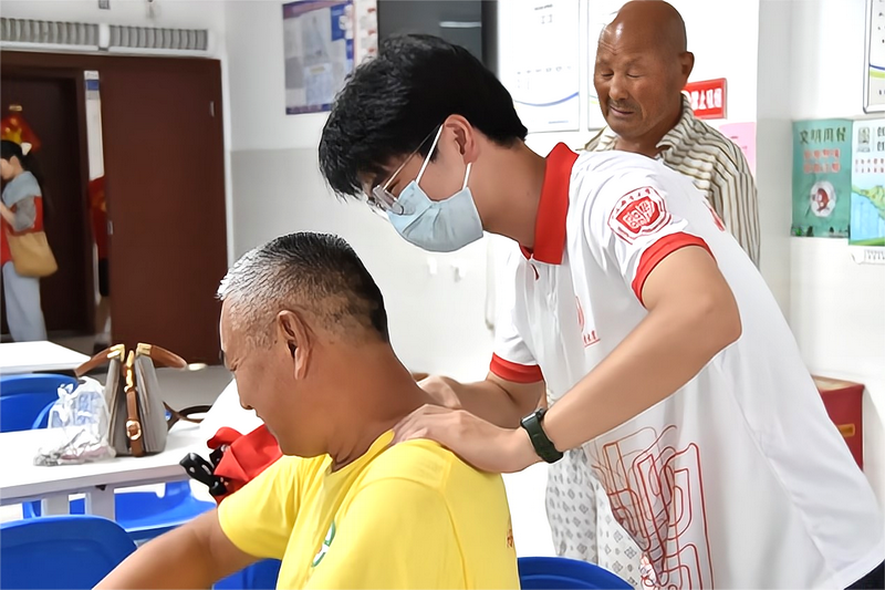 实践团成员为老人按摩