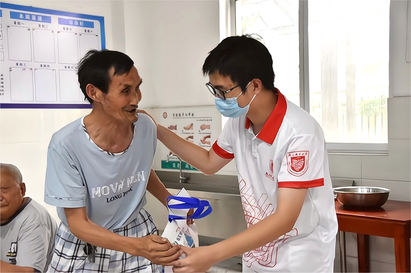 “尊老敬老仁之本,和谐社会孝当先。”开营仪式结束后,实践团全体成员联合义工联义工同志们前往十二圩颐养中心,以青春温暖夕阳,为敬老院21名五保户老人、59名寄养老人送去关怀慰问。