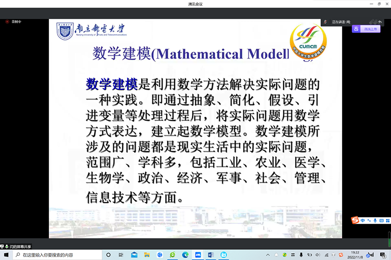 闫庆伦老师首先为同学们详细介绍了数模校赛、美赛、国赛的相关要求及比赛的重要时间节点,通过对比美赛和国赛的赛题及奖项,详细剖析了两个比赛的题型区别及获奖情况,让同学们对数模竞赛有了初步的认识。