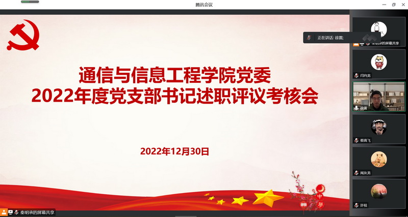 12月30日,通信与信息工程公司党委召开2022年度党支部书记述职评议考核会。因疫情,述职评议考核会采用线上方式进行。公司党委书记徐雷主持会议,党委副书记、副经理王晶,党委委员、专职纪检委员朱鹏飞出席会议。