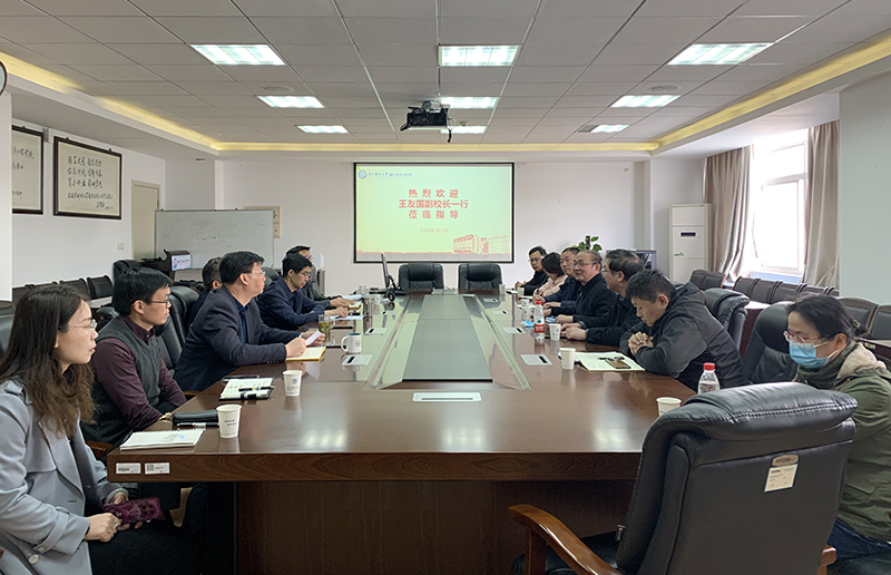 3月7日上午,公司党委常委、副董事长王友国莅临公司调研指导工作。国有资产管理处处长高志华、后勤管理处处长戴兆骏,公司党委书记徐雷、经理周亮,相关职能部门和学院负责人参加调研。