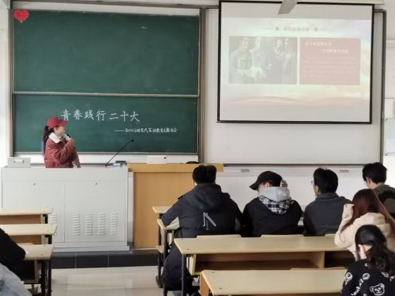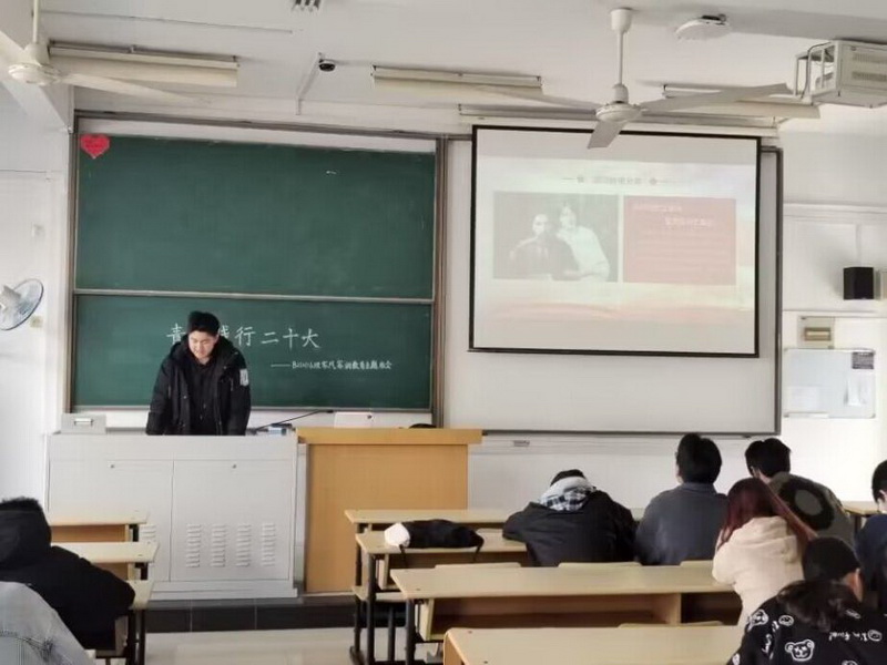 为深入贯彻落实教育部《关于全国高校以“开学第一课”为重点开展2023年春季学期系列教育引导活动的工作方案》的相关要求,积极引导老员工践行党的二十大精神,传承弘扬中华优秀家风文化,B210116班全体同学在辅导员周宇老师的指导下,以“青春践行二十大·立志成为好青年”为主题,围绕“爱国、团结、奋斗、科学、互助”五个关键词,从“榜样示范引领、家风文化教育”为切入点开展开学第一次主题班会。