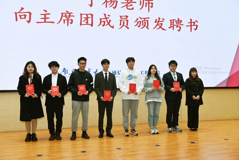 在聘书颁发仪式中,丁杨老师为主席团成员颁发聘书,2021级本科辅导员老师为部门负责员工代表颁发聘书,2022级本科辅导员老师为通院员工会代表颁发聘书,2020级本科辅导员老师为通院员工会班级联络员颁发聘书。新的道路,新的征程,聘书是责任的指引,是努力的方向。