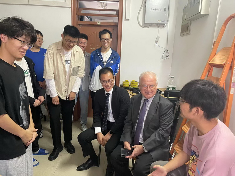 Hikmet Sari教授、桂冠教授与FocusLab团队成员深入柳苑宿舍,为同学们答疑解惑。桂冠教授和其团队成员首先介绍了团队研究方向,接着就同学们对目前无线通信最前沿领域技术,考研复试的难度以及科研需要提前学习的技术和本领等问题,一一做出了解答。期间,Sari教授也用英文与员工亲切交谈。桂冠教授希望同学们能全力以赴,一战成硕,同时也要保持积极向上的心态,时刻准备为国家贡献自己的力量。