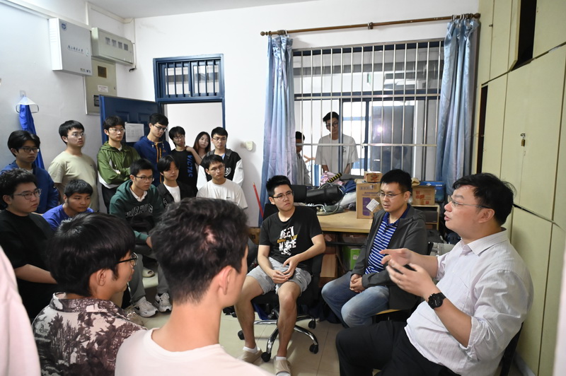 江苏省无线通信重点实验室吕文俊教授、卫星通信研究所刘子威副教授、量子信息处理科研团队王乐副教授,带领硕博研究生深入柳苑宿舍,近距离与同学们交流。王乐副教授耐心解答了同学们对量子通信领域的困惑,细致地给介绍了量子通信的相关知识和当前技术难点;刘子威副教授讲解的内容主要涉及未来6G卫星通信的规划和部署,通过介绍这些通信的前沿课题,让同学们对于学习的目的有了更深的体会,也让他们将科学研究与国家、民族紧紧联系在了一起,增加了学习的动力。吕文俊教授向同学们强调作为一名合格的本科生,需要将所学习的各个专业课建立起联系,结合上学期他给大三同学们讲授的专业课程整体串线帮助同学们更好的掌握所学的专业知识,同时也向同学们强调了高等数学的重要性,对于工科的科研来说,数学是所有研究的基础,因此同学们要在本科期间打牢数学基础,培养逻辑思维能力至关重要。期望同学们能够在时间充裕的情况下最好尝试阅读学术期刊,在阅读过程中找到最适合自己的研究切入方向,并在一个方向上努力钻研,才有可能做出突破。