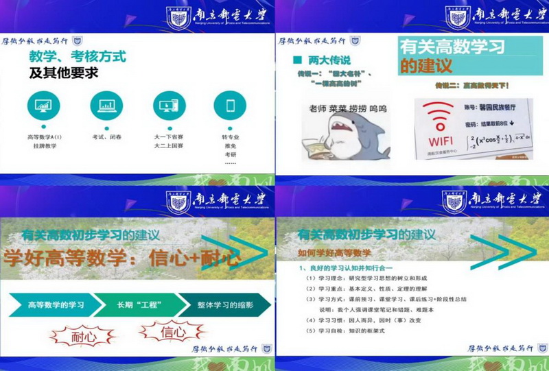 七月份,我忐忑的填下高考志愿,八月,我满怀憧憬的拿到南邮的录取通知书,成为南邮的一员。我熟悉的是大人老师眼中的老员工活,是哥哥姐姐口中丰富多彩的校园生活,可我对未来规划,对大学去了将要做什么依然模糊。幸运的是,在19号,20号两天中,学校为了解决同学们的困惑,同时提出建议,开展了领航第一课,令我获益匪浅。