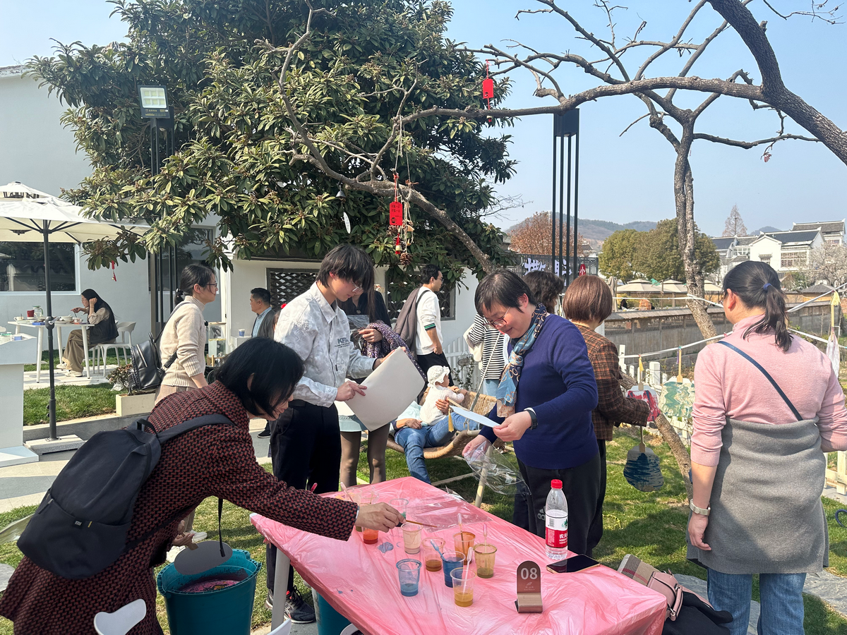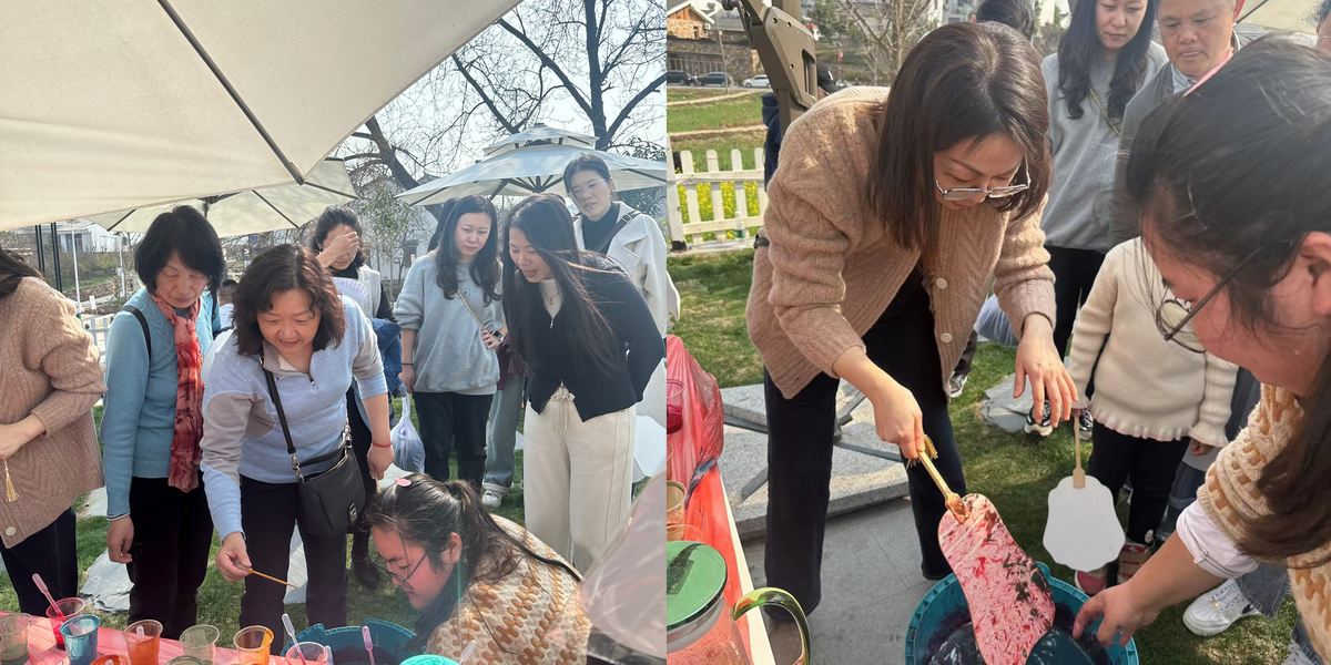 以漆做笔,以水做画,漆扇的诞生就像开盲盒,充满奇趣。女教职工们纷纷按照自己对颜色的喜好进行配色,将团扇浸入漆盆,让漆色在扇面上自由流淌。