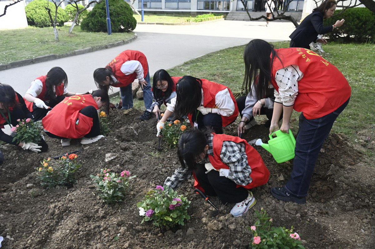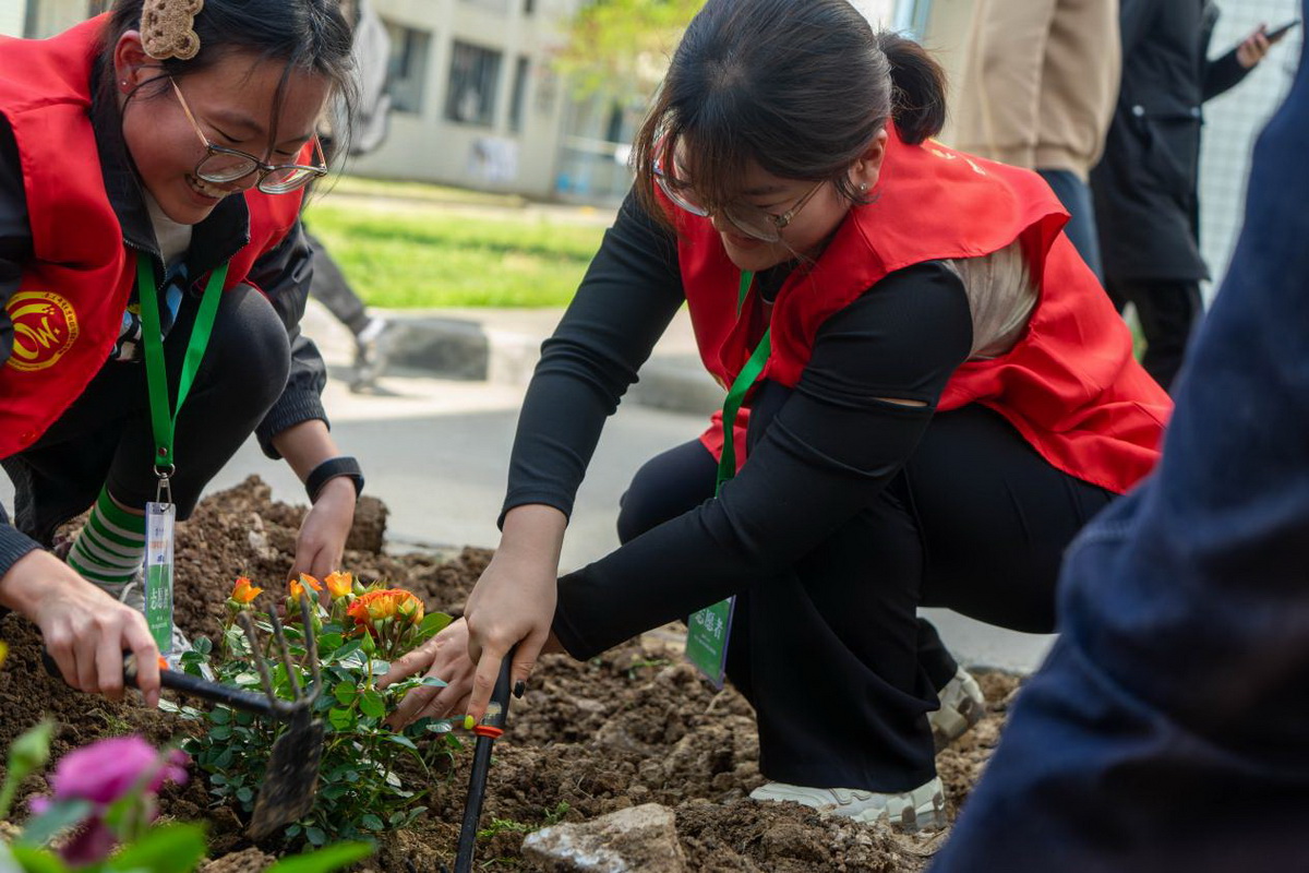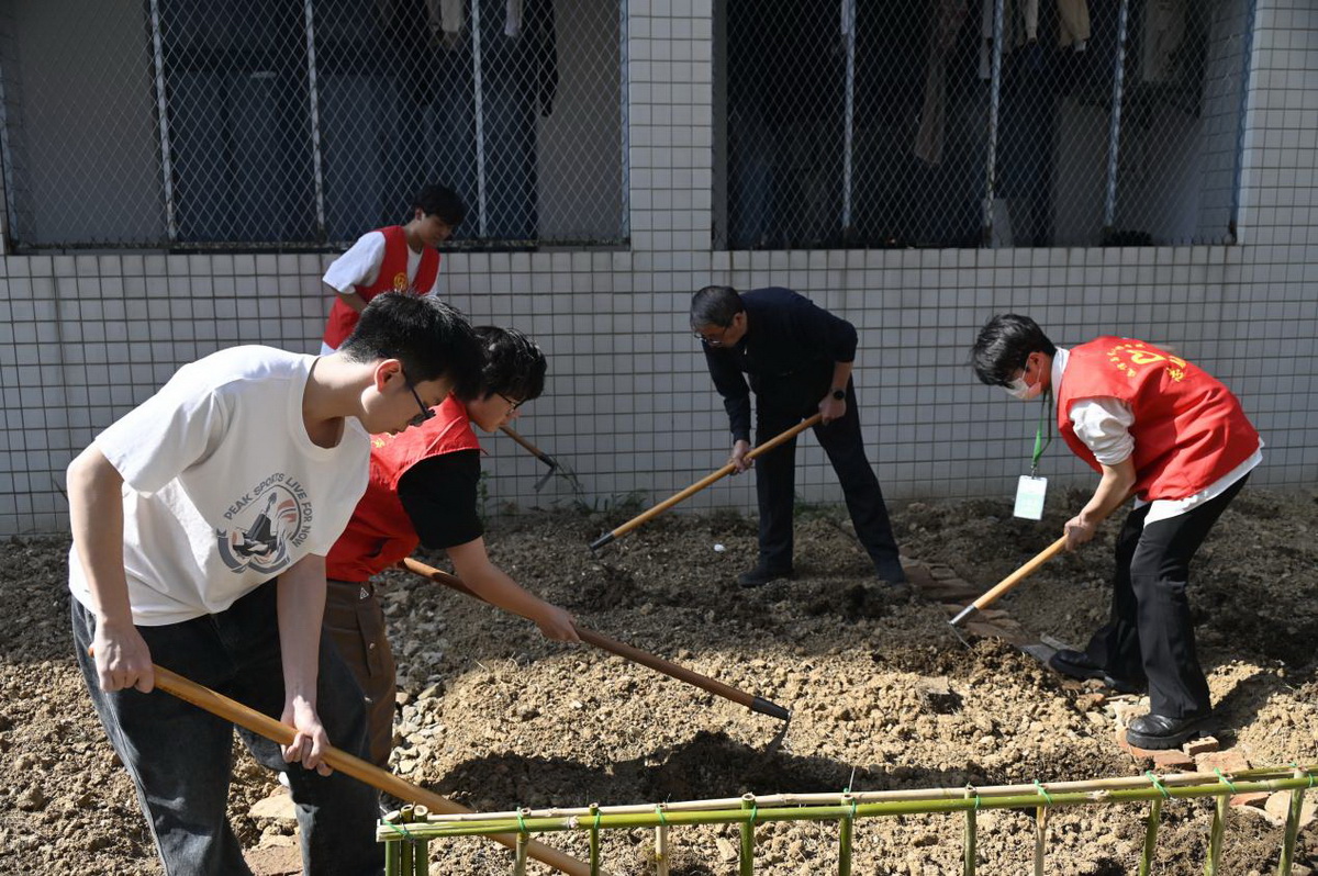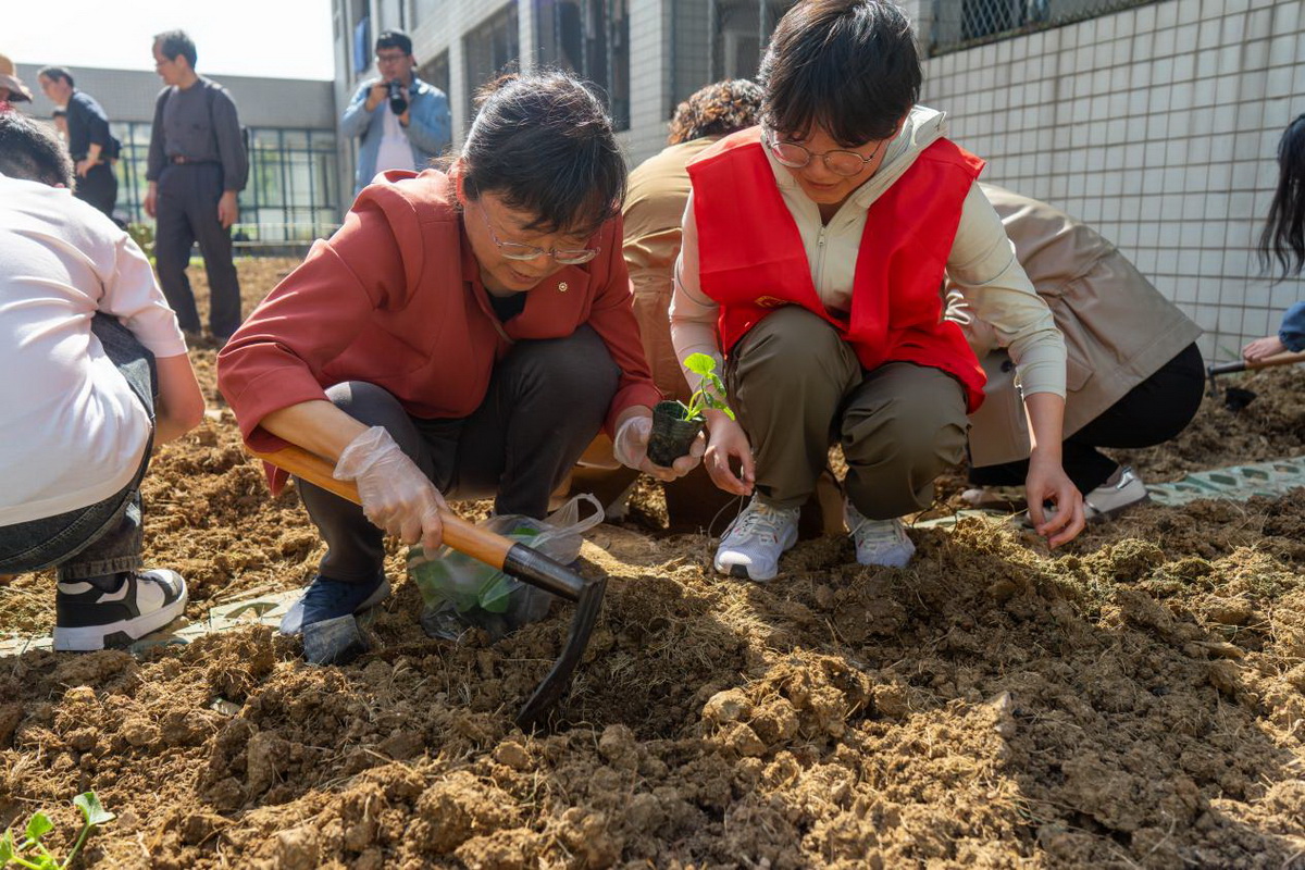 启动仪式结束后,活动志愿者将提前准备好的蔬菜苗,如丝瓜、西葫芦、黄瓜、茄子等集中展示,让同学们识别和竞猜,并邀请宿管阿姨讲解植物的特征和种植技巧。随后,师生们纷纷拿上工具走向田间地头,挥动锄头挖坑、播种、浇水,在亲身的实践中学习农耕技巧,感受劳动魅力。