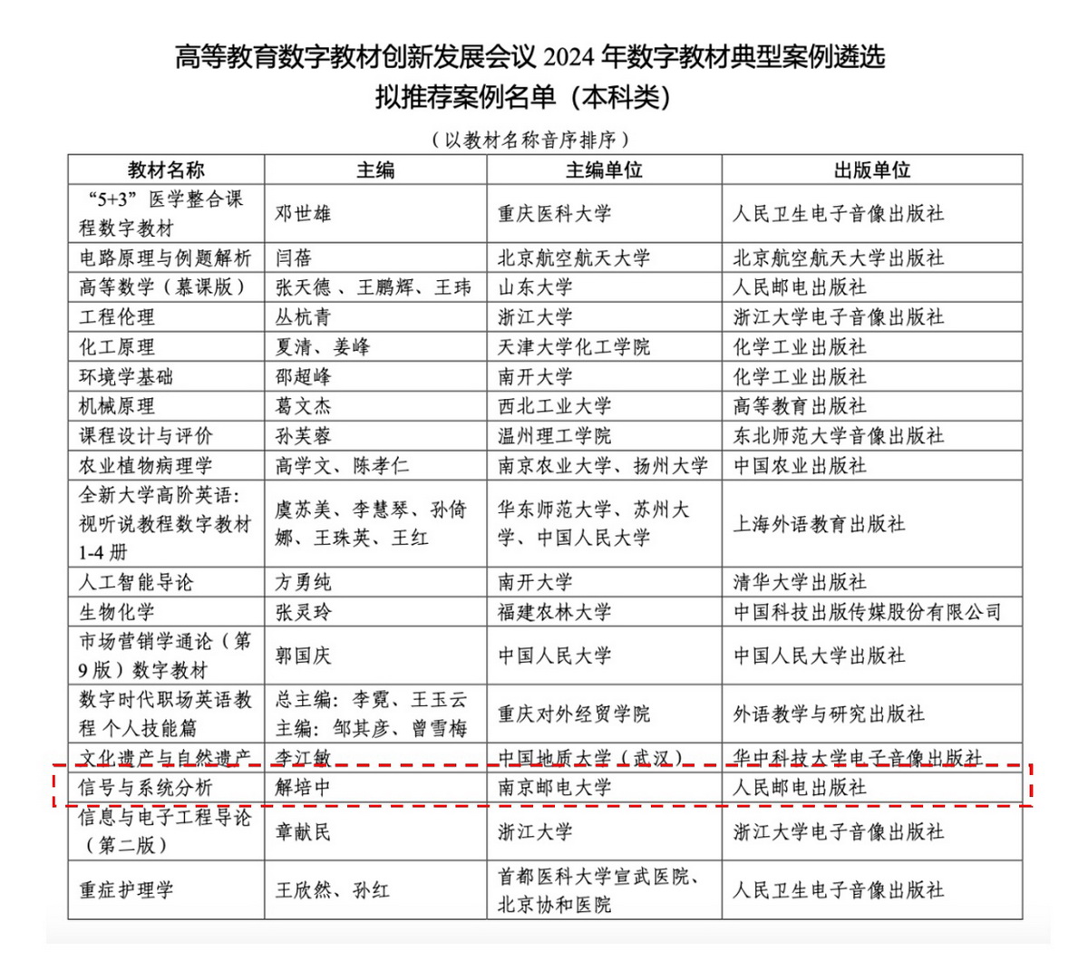 公司解培中教授《信号与系统分析》数字教材入选数字教材联盟2024年数字教材典型案例