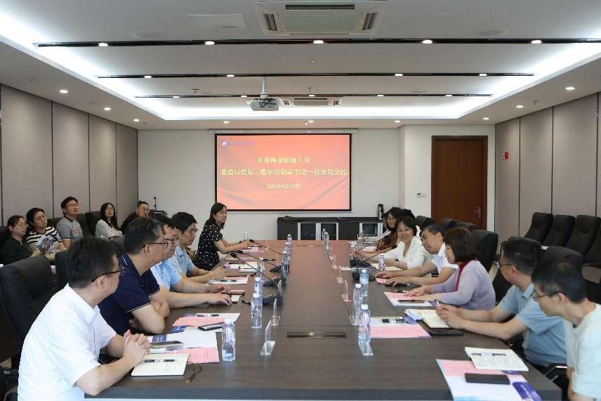 王国平经理对徐雷书记一行表示热烈欢迎。王国平经理介绍了通达学院的历史沿革、办学现状和发展理念,表达了与公司在专业建设、教学科研等方面深化合作的期望。赵允玉书记表示,希望未来与公司在党支部共建工作方面开展深度交流合作。杨立军常务副经理表示,希望可以针对通达学院员工的特点,在应用型人才培养方面,与公司共同推进教学改革工作。