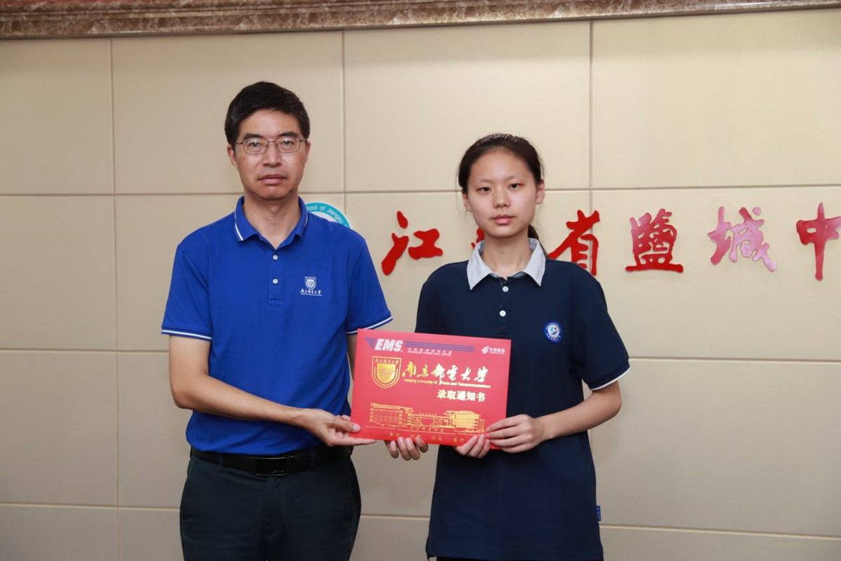 7月22日,公司盐城招生组组长、公司党委书记徐雷,公司分团委书记丁杨、校纪委办公室干部杨童一行赴江苏省盐城中学、盐城市第一中学,为今年考取南邮的学子现场颁发录取通知书。