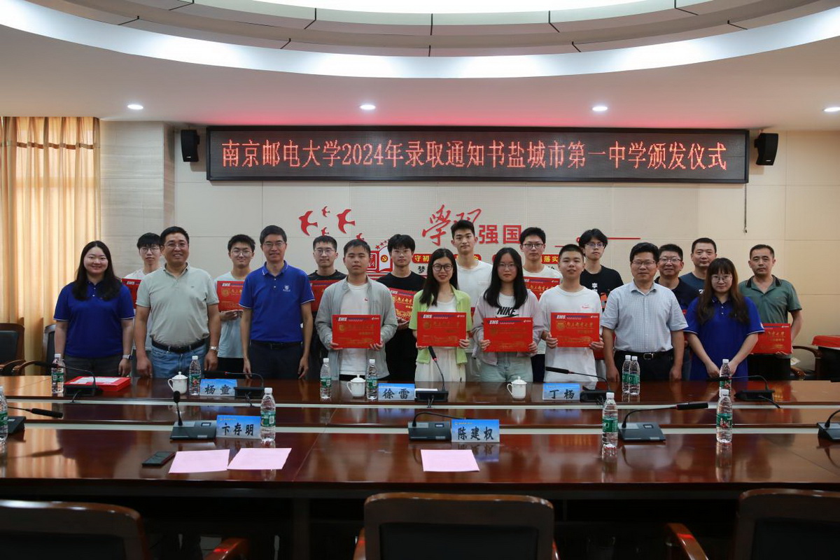 下午,徐雷书记一行来到盐城市第一中学,为今年考取南邮的25名一中学子现场颁发录取通知书,受到公司党委书记、董事长陈建权,副董事长卞存明的热情接待。