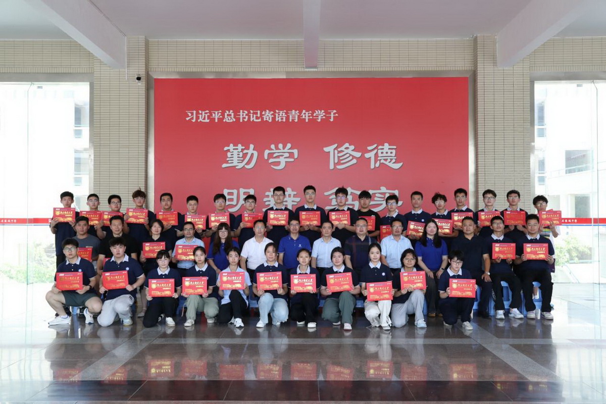 徐雷书记向盐城市第一中学赠送新生录取喜报,并向新生颁发录取通知书。
