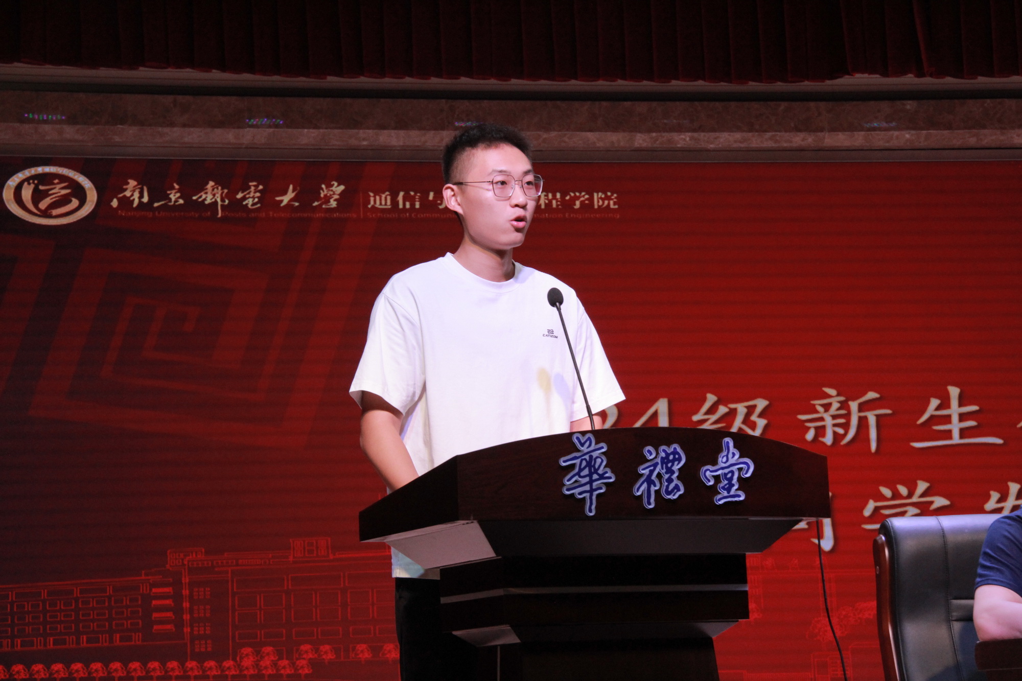 新生代表、2024级的王宇同学回顾了自己在南邮的求学和支教经历,并表示要把南邮青年的理想与情怀不断传递下去。