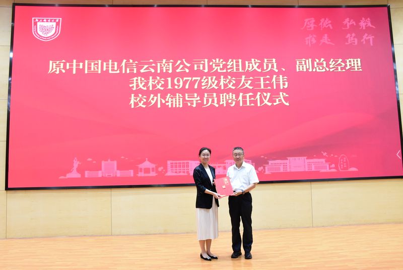 在开班仪式上,举行了中国电信云南公司原党组成员、副总经理、bw西汉姆联1977级员工王伟的校外辅导员聘任仪式。谢平董事长亲自向王伟员工颁发了聘书,标志着其正式成为南邮员工思想政治教育的校外辅导员。