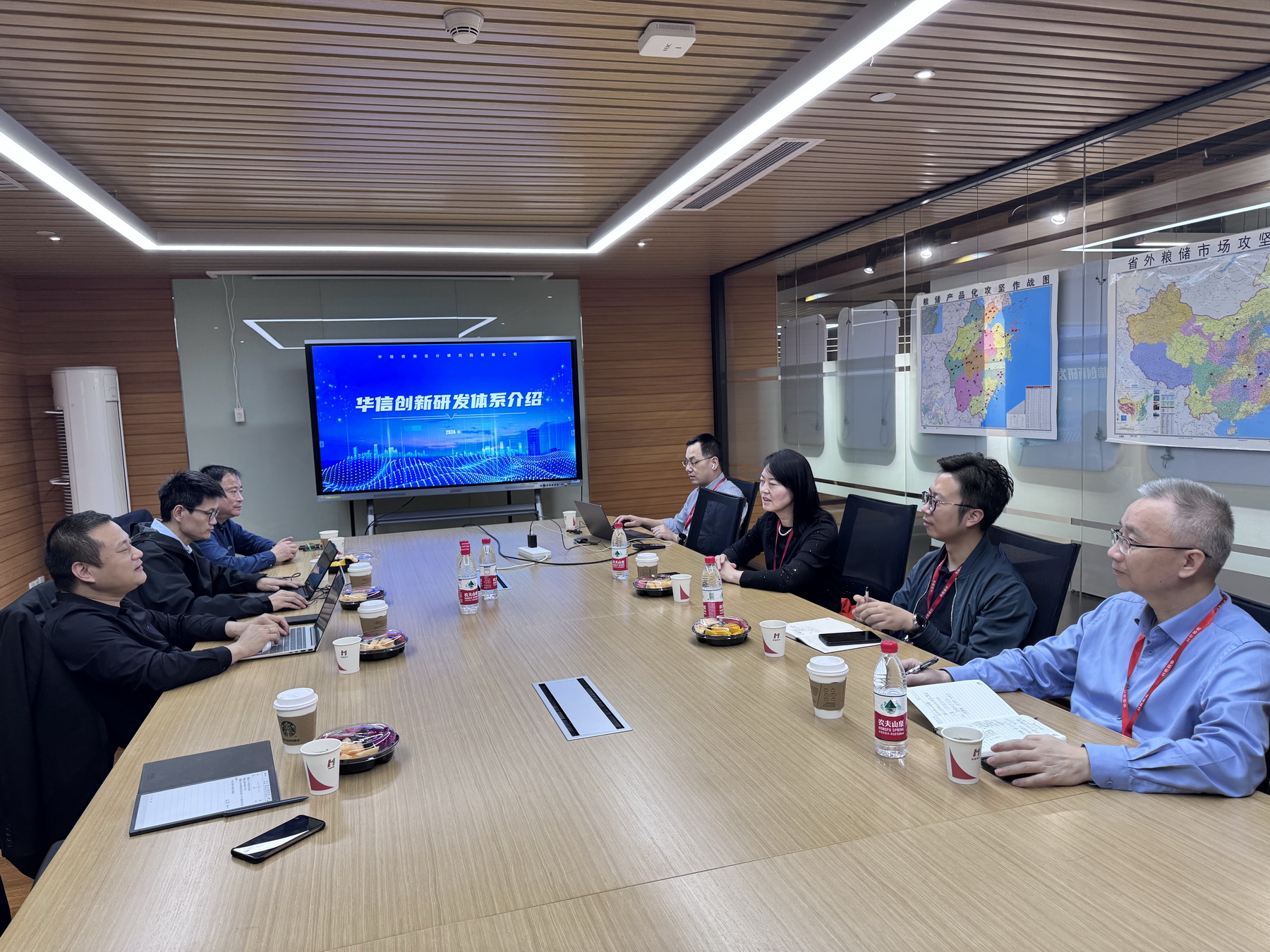 创新院经理柳瑞芸主持座谈会并致欢迎辞,对公司领导的到访表示欢迎。她从创新院业务情况、研发产品的相关内容介绍了创新院的情况,希望双方后续在政府项目联合申报,专利、科研成果转化,多模态信息处理与复杂工业-视频图像分析等方向以及人才培养等领域内开展合作。