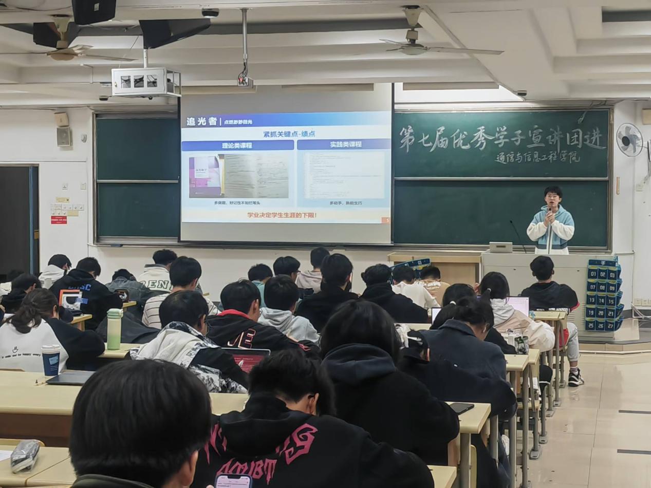 宣讲会上,公司博士生党支部书记余鹏航讲述了大学绩点和科研的重要性,生动形象地举例解释了学术论文的三种创新模式,同时结合自身经历鼓励同学们积极参加社团活动和志愿服务等,做一个朝气蓬勃、爱国爱党、无私奉献的追光者、点灯人。