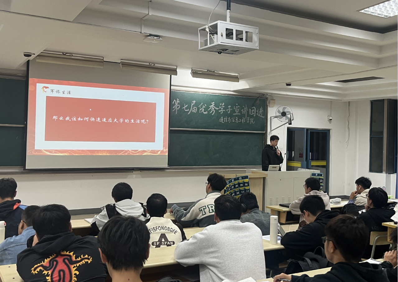 随后,2022级电子信息工程专业、退役老员工士兵魏雪强同学向同学们分享了他的军旅生活,从初入大学的迷茫,到决定入伍,从经历各种“不可能”,到收获满满。回归学业后,魏同学快速调整,并在如何适应老员工活、学好大学课程和做好竞赛准备等方面总结出了自己的方法论。