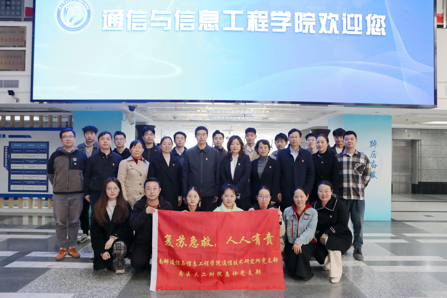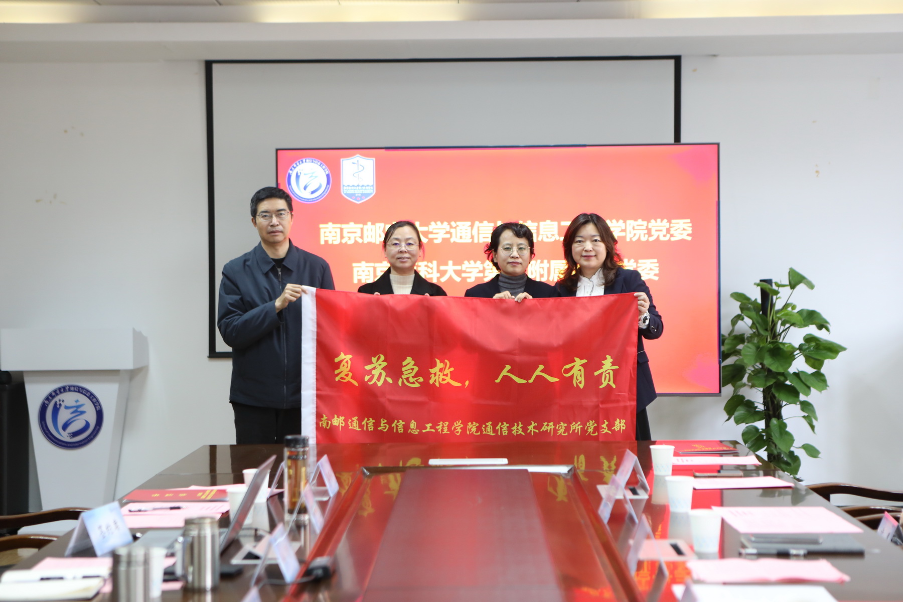 徐雷书记热烈欢迎南京医科大学第二附属医公司党委领导及急诊支部党员莅临指导,从学院的建院历史,学科发展,人才培养,科研成果,党建工作等方面介绍学院的情况。南京医科大学二附公司党委副书记、副经理汪洁云介绍了医院的历史及发展情况。南京医科大学第二附属医院急诊支部书记丁红和通信技术研究所党支部书记蔡艳分别介绍了各自支部情况。