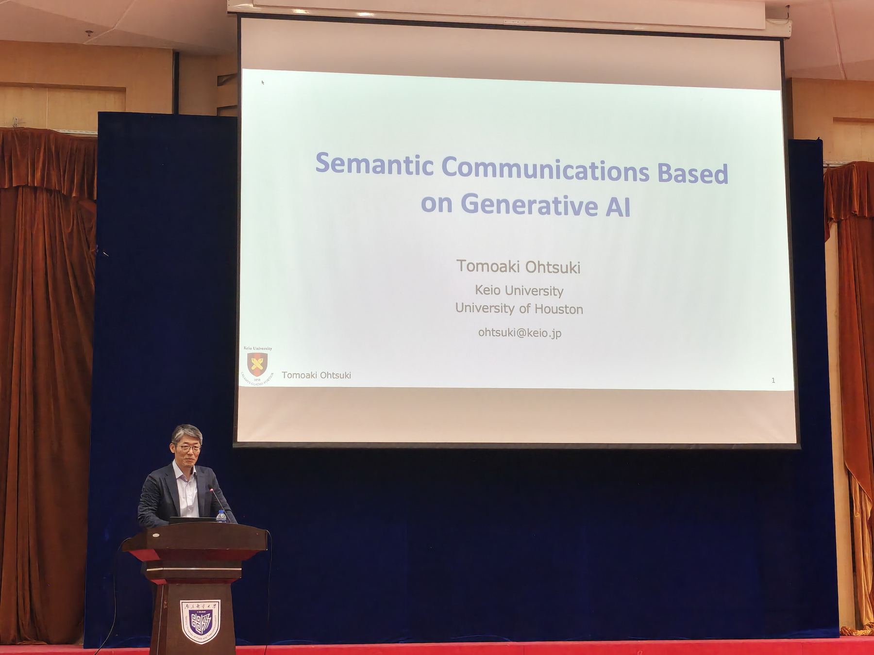 Ohtsuki教授作题为《SemanticCommunications Based on Generative AI》的报告。他回顾了语义通信自Weaver于1949年提出以来的发展历程,并重点介绍了其团队构建的多维语义表示系统。该系统借助生成式AI模型(Stable Diffusion)实现对图像语义的高效编码与还原,具备带宽优化、用户定制、抗扰鲁棒与隐私保护等多重优势,在图像通信、远程协作等场景中展现出强大潜力。Ohtsuki教授指出:“语义通信不仅关乎效率,更关乎人类与AI之间意义传递方式的根本变革。”