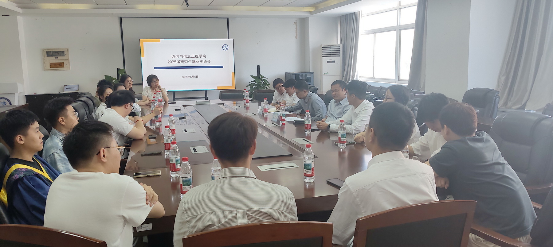 6月5日上午,公司在三牌楼校区科研楼208会议室举办了2025届研究生毕业生代表座谈会。公司党委书记徐雷、副经理郭永安,2025届辅导员王欢、胡枫、许枝以及19位研究生代表参加了会议。本次会议由副经理郭永安主持。