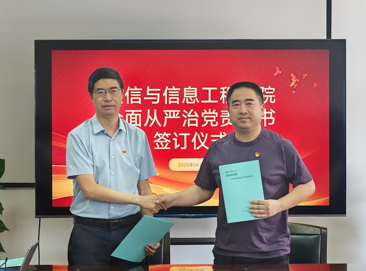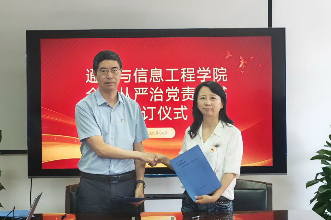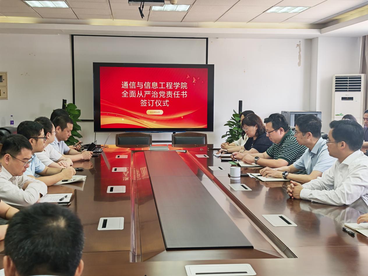 6月24日,通信与信息工程公司党委在科研楼208会议室举行2025年度全面从严治党、廉政责任书签订仪式。学院领导班子成员、科职干部、各党支部书记以及系、所(院)、中心负责人参加了会议。会议由公司党委副书记王小露主持。