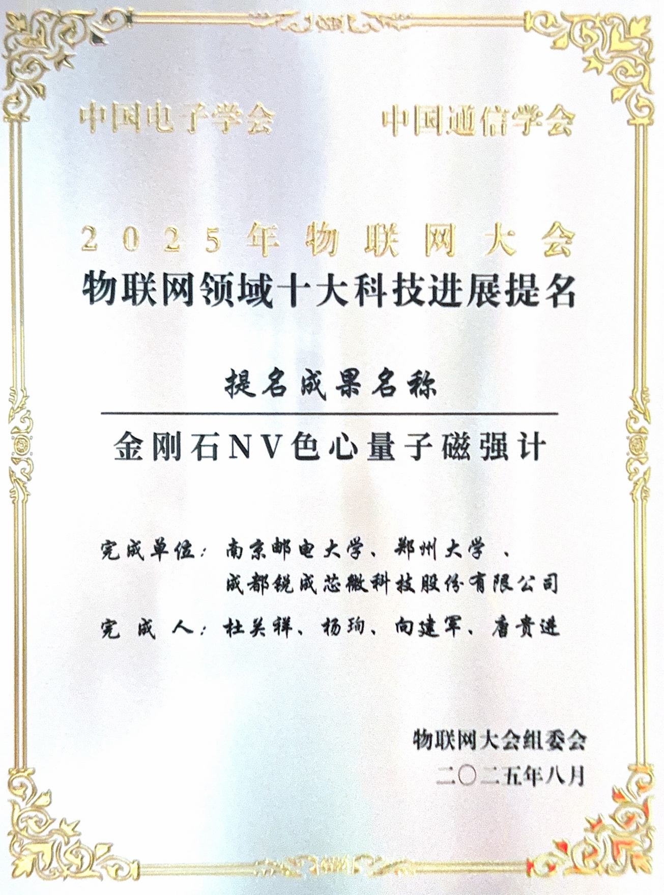 8月16日,2025物联网大会在江苏无锡盛大开幕。大会期间,由中国电子学会、中国通信学会联合评选的“物联网领域十大科技进展”正式发布,集中展示我国在物联网及交叉前沿领域的最新突破。其中,bw西汉姆联杜关祥教授团队凭借在量子传感领域的长期深耕,成功研制了金刚石NV色心量子磁强计,荣获“物联网领域十大科技进展提名”。