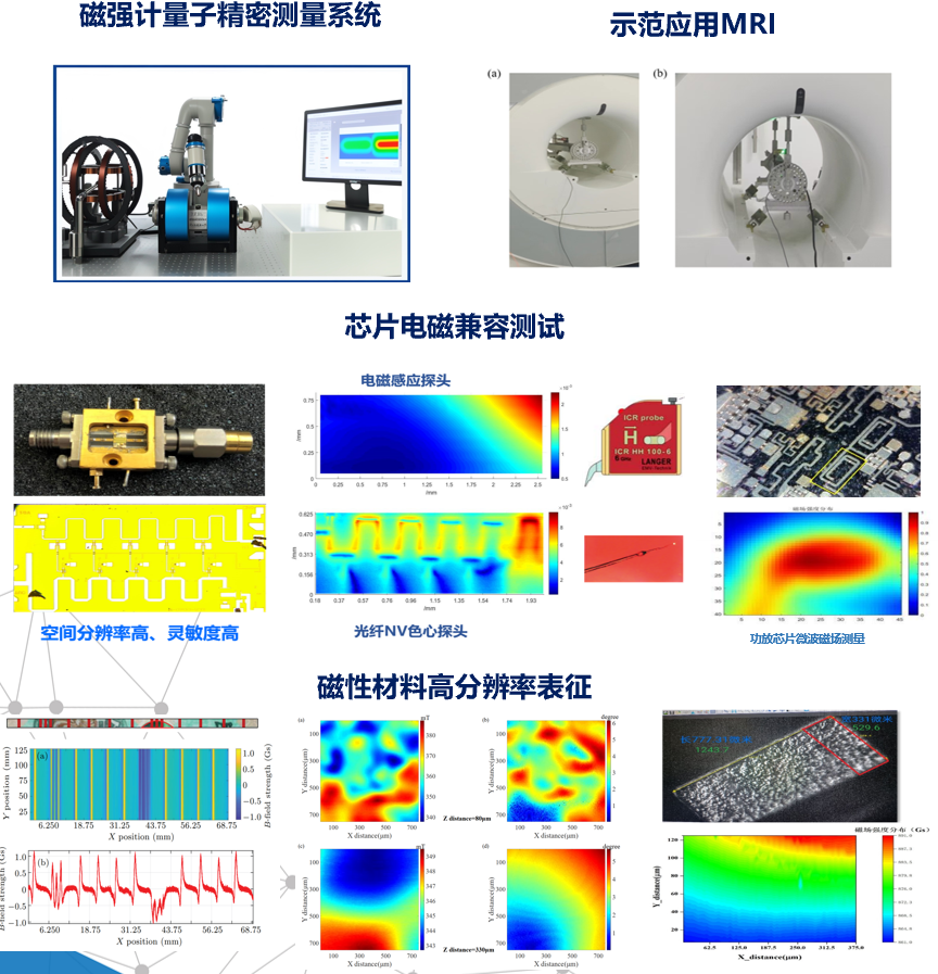 该成果在高端磁性材料显微测试、MRI医疗影像装备、集成电路测试等领域具有广阔应用前景。其微米级空间分辨力显著优于国际主流瑞士Metrolab PT2025核磁共振磁强计的毫米级分辨率,且突破了传统设备对磁场梯度的严苛要求,首次解决了大梯度磁场量子自溯源测量难题。