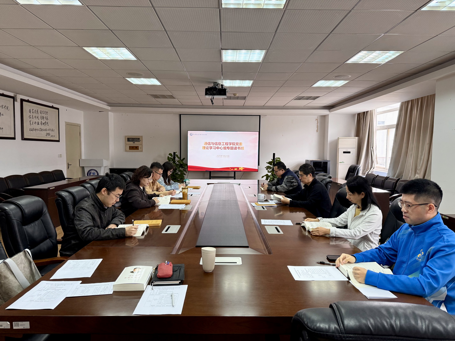 10月15日、20日,通信与信息工程公司党委理论学习中心组举办读书班,专题学习《习近平谈治国理政》第五卷部分章节。公司党委书记、党委理论学习中心组组长徐雷主持学习会。
