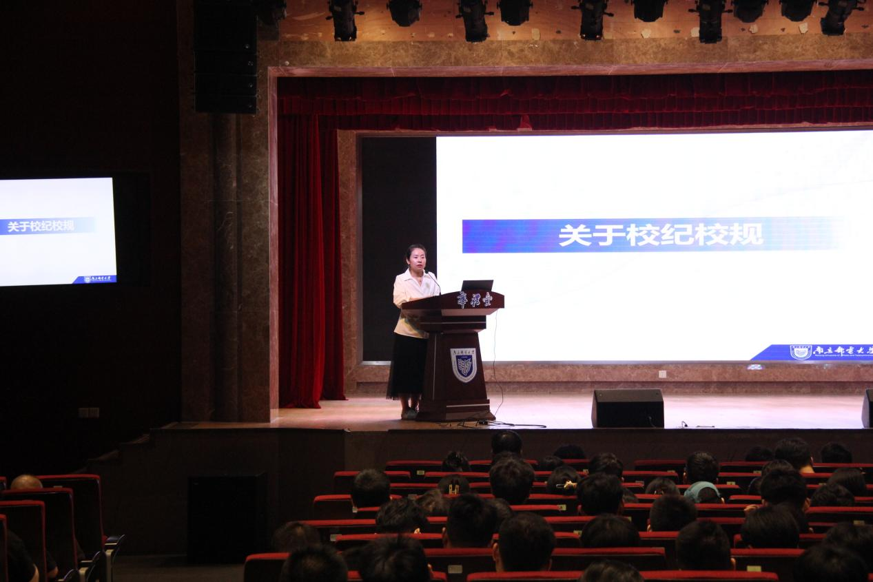 许枝老师首先代表学院向新生表示欢迎,并围绕“理想信念、学业导航、规范守纪、成长赋能、安全护航”五大主题,系统介绍了研究生阶段的培养目标、管理要求与发展路径,内容涵盖理想信念、科研能力、校纪校规、心理健康及安全稳定等方面。在学业方面,许老师结合往届优秀案例,分析了研究生与本科阶段在科研训练、思维模式上的差异,鼓励新生尽快转变角色,科学规划学业,恪守学术道德,勇于创新,提升解决复杂问题的能力。在管理与成长方面,她重点强调了自律与自我管理的重要性,要求同学们遵守规章制度,端正学风,并鼓励大家积极参与校园活动与学科竞赛,拓展视野,锤炼能力,实现全面发展。