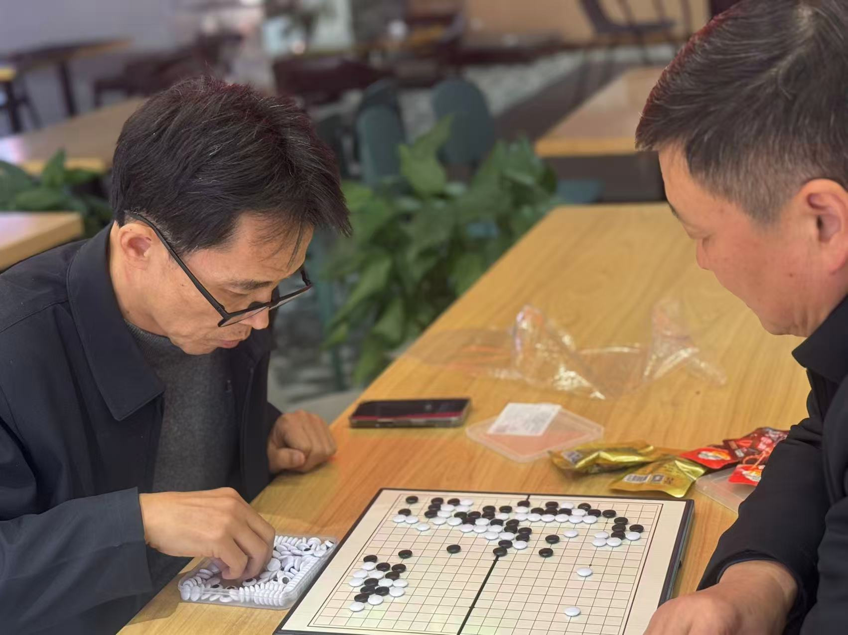 学院精心筹备,为参赛选手准备了丰富的水果、点心和饮料,让大家在紧张比拼之余,能及时补充能量,感受贴心关怀。线下赛场氛围热烈,象棋、五子棋和掼蛋比赛同步开展。参赛教职工们专注凝神,在棋盘上排兵布阵、斗智斗勇,每一步落子都尽显策略与思考;掼蛋桌前,搭档间默契配合,时而低声研讨战术,时而果断出牌,现场欢声笑语不断。线上赛场同样精彩纷呈,王者荣耀比赛中,教职工队伍凭借精湛操作和默契团战展开激烈角逐,直播间内互动频繁,气氛持续高涨。
