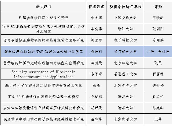 2025年度中国通信学会博士学位论文激励计划入选名单