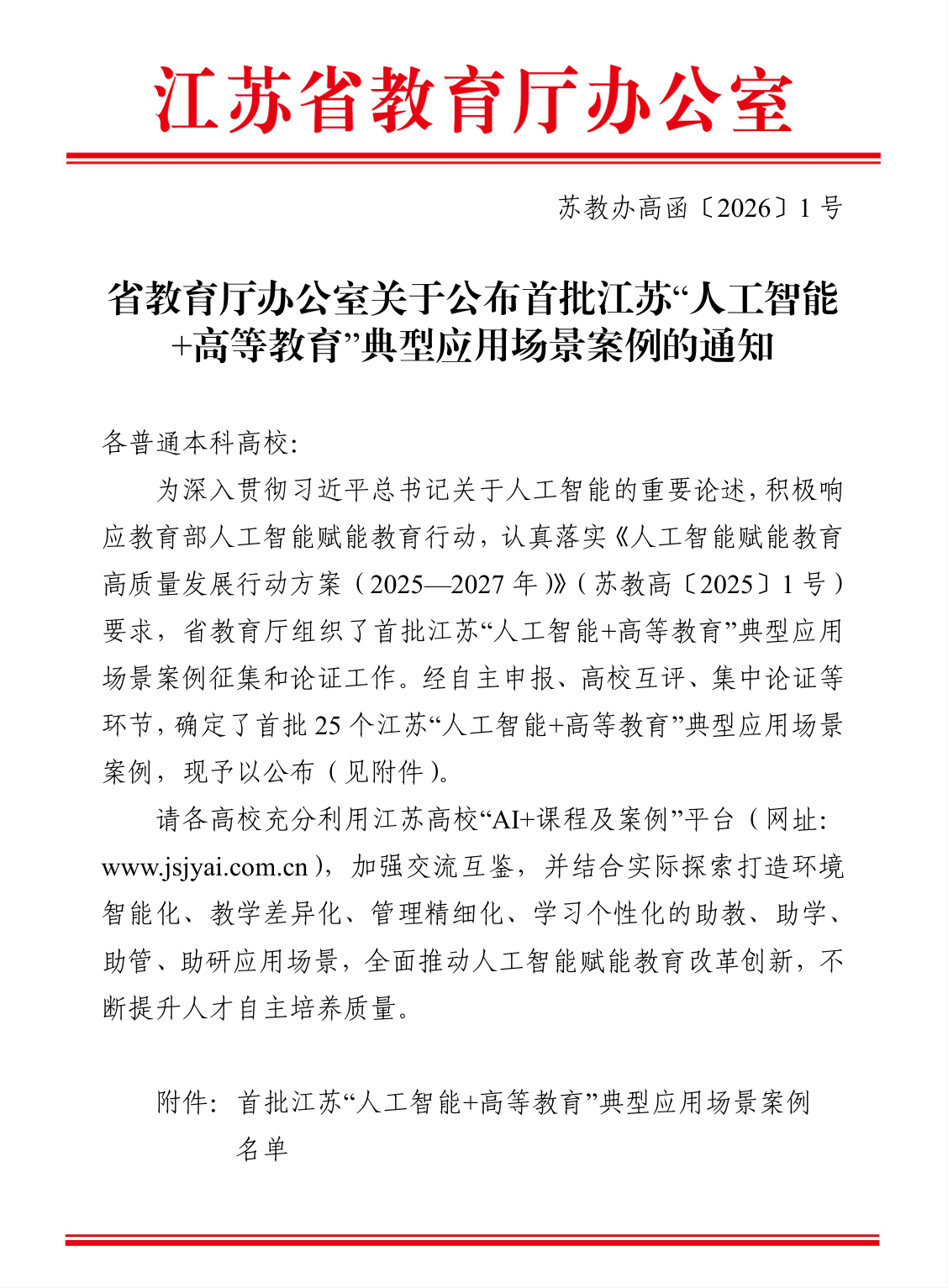 此次案例征集与论证工作由省教育厅组织,旨在深入贯彻国家关于人工智能发展的重要精神,落实《人工智能赋能教育高质量发展行动方案(2025-2027年)》。经过严格的自主申报、高校互评与集中论证环节,最终确定了25个具有代表性的典型应用场景案例。